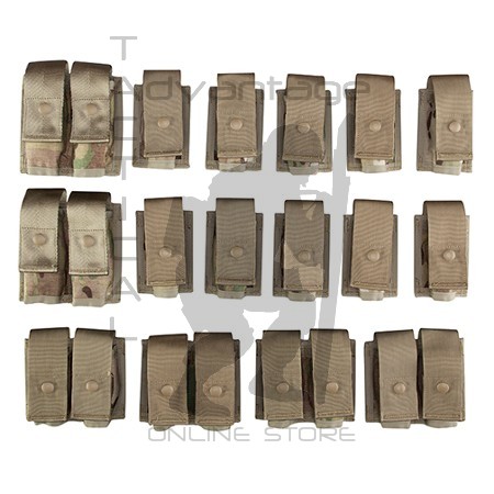 Grenadier Pouch set consists of: (10) Single 40mm High Explosive Pockets - OCP 8465-01-642-2291 (4) Double 40mm High Explosive Pockets - OCP 8465-01-642-2293 (2) Double 40mm Pyrotechnic Pockets - OCP 8465-01-642-2294