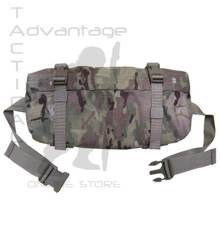 FEATURES: • Heavy duty two-way zipper closure with dual fastex buckles • Dimensions: Approximately 15" x 6" x 4" • Capacity: Approximately 350 cubic inches • Attachment: Waist strap stowable in slot pocket for attachment to a rucksack, assault pack, FLC vest, or can be utilized as a stand-alone waist pack • Drainage: Grommet on the bottom for drainage • Component of MOLLE 4K • Made to Mil-Spec CO-PD-02-02