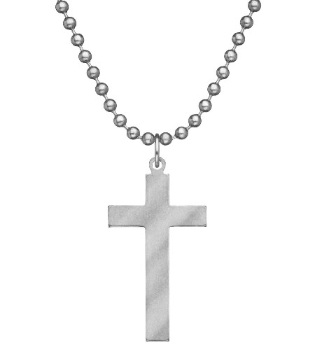 Made tough for the many Catholic Americans serving in our Armed Forces, this Genuine U.S. Military Issue Long Cross is precision carved out of non-magnetic, non reactive, brite finished, 100% 304 stainless steel. It has a 24" stainless steel dog tag chain and is 1 1/8" tall x 11/16" wide x 3/32" thick.